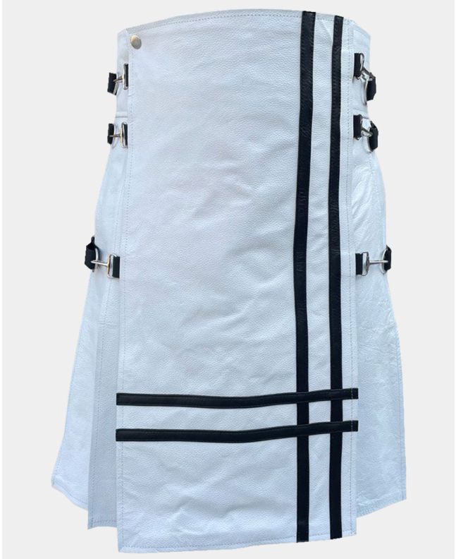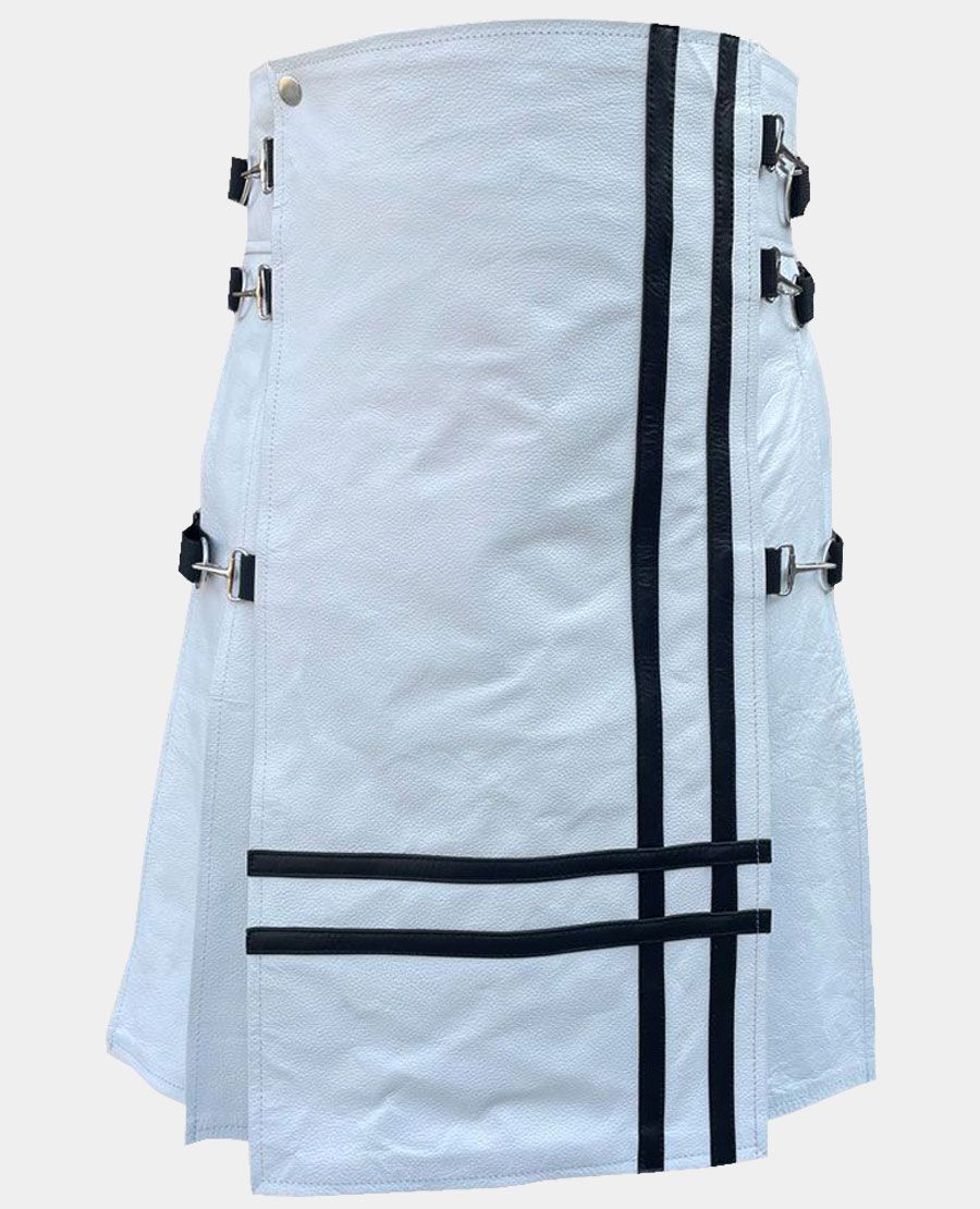 Brand: This White Front Black Cross Leather Kilt is made by Kilt Attire